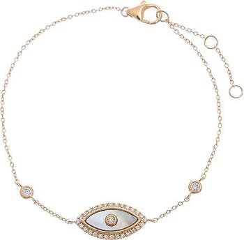 Diamond Pave MOP Evil Eye Charm Bracelet 14K