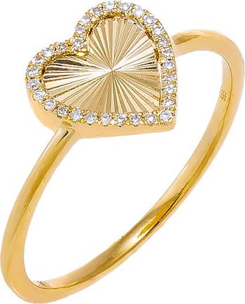 Diamond Pave Ridged Heart Ring 14K
