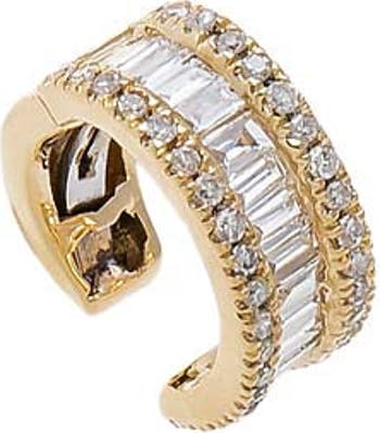 Diamond Pave X Baguette Ear Cuff 14K