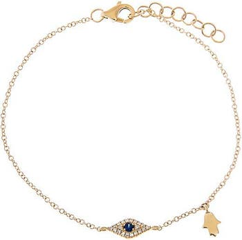 Say more with less in the Diamond Pave X Sapphire Blue Evil Eye Charm Bracelet by Adina Eden, a clean and classic 14K Bracelet. Vibrant, elegant, and made to move, this comes in 14K Gold. From solo errands to group dinners, this stylish accent fits into every outfit rotation and still feels fresh with each wear. Style this with styles from our 14K Tennis Bracelets collection to make your everyday styling effortless. Compliments come easy—without trying, this one stands out.