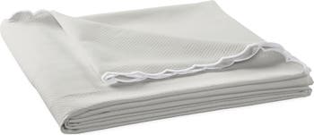 Embroidered, scalloped edging charms this lightweight coverlet that's lightly textured with a quilting-inspired diamond pattern.