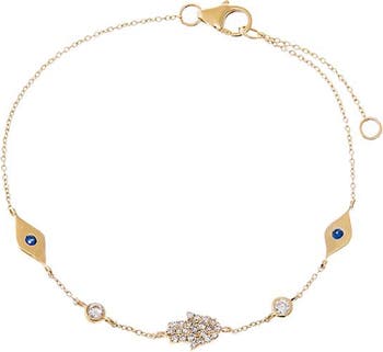Say it with sparkle in the Diamond Protection Motif Bracelet by Adina Eden, a confident and classy 14K Bracelet. Make it personal with this gold bracelet for women, available in 14K Gold to express your style. From morning errands to evening events, this flexible piece blends into your style so well, it feels like it was always there. Match this 14k gold bracelet with accents from our 14K Tennis Bracelets collection to keep things polished, modern, and fun. You'll be surprised how often this becomes part of your look.