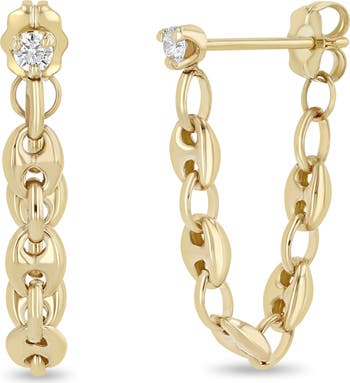 Dimensional mariner chains wrap your lobes in these 14-karat-gold drop earrings that are lit up with prong-set diamonds.