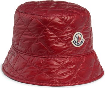 An iconic logo patch brings signature Moncler flair to this classic bucket hat made from the label's longue-saison fabric textured with diamond quilting.