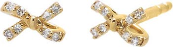 BY ADINA EDEN Diamond Set Criss Cross Stud Earring 14K, Main, color, 14K Gold