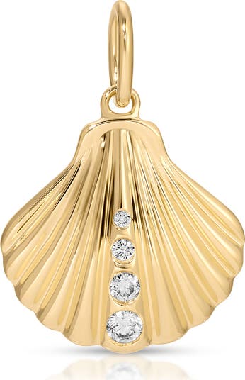 A graduated stream of diamonds highlights the organic beauty of this shell pendant crafted from 14-karat gold.