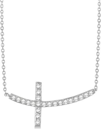 14k yellow gold sideways curved cross pendant necklace with 0.50ct diamonds for a stylish, contemporary design.