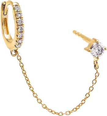 Add a touch of modern elegance with Adina Eden's Diamond Solitaire Chain X Huggie Earring, exquisitely crafted in 14K gold. This unique earring features 8 brilliant round-cut diamonds with a total weight of 0.16 carats, offering a radiant sparkle. The 10mm huggie is connected to a delicate 0.5" drop chain, creating a sophisticated and chic design. Sold as a single, this stunning piece is perfect for mixing and matching, adding a contemporary flair to any look, whether worn solo or paired with other earrings.