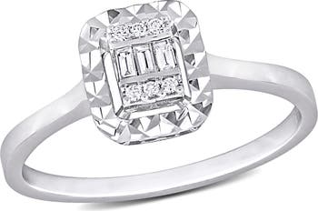 Enhance your style with our Diamond Accent Square-Shape Cluster Ring in 14k White Gold. This stunning piece features a captivating design with parallel baguette-cut and round-cut diamonds meticulously set in a 14k white gold band. The combination of these sparkling stones creates a timeless and elegant look.
