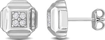These lovely square stud earrings are crafted in sterling silver and features a total of eight dazzling diamonds in the center design. These earrings are enhanced with a high polish finish