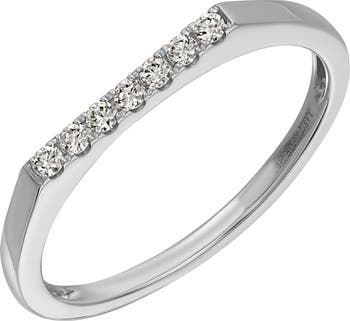Polished and sleek, this handcrafted 18-karat-gold ring features a flat top inset with a row of seven brightly sparkling round-cut diamonds.