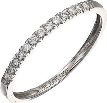 A line of 13 diamonds glitters in a slim-but-mighty ring handcrafted from 18-karat gold.