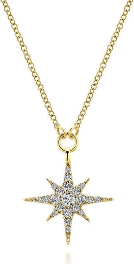 Pavé diamonds burst with sparkle inside a starry pendant suspended from an elegant 14-karat gold chain.