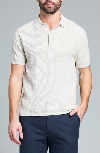 Knit in breathable cotton, this polo-sweater features a captivating diamond texture that reads polished up close and striking from across the room.