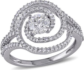 Dare to dazzle with this One-of-a-Kind engagement ring. This lovely piece features a prong-set round-cut diamond at the center enhanced by lovely swirls of surrounding diamonds. It can be a gift to someone special or for your own personal jewelry collection.