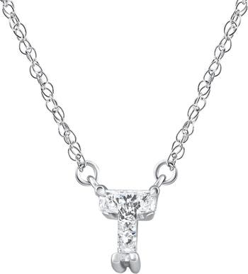 Diamond "T" Initial Pendant 18" Necklace 14K Gold Lab Grown