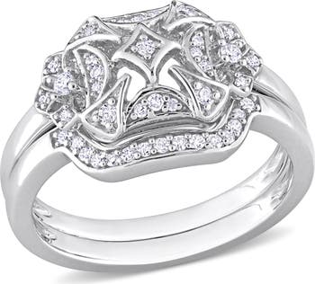 Capture the sophisticated charm and enduring beauty of this vintage engagement ring. Crafted in luminous sterling silver, the ring features intricate detailing that evokes the artistry and romance of a past era. The diamonds provide a graceful, subtle sparkle that enhances the classic design. This piece is a beautiful and cherished symbol of timeless love and commitment.