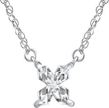 Diamond "X" Initial Pendant 18" Necklace 14K Gold Lab Grown