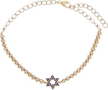 Diamond X Sapphire Blue Star Of David Tennis Bracelet 14K
