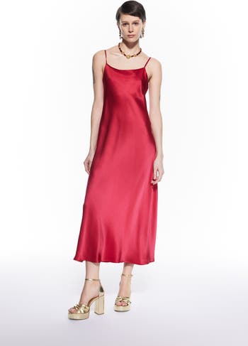 The Dian Silk Nightdress features a classic, sleek design with thin shoulder straps that create an elegant, minimalist silhouette. Its midi-length flows beautifully, offering a refined look for formal occasions or evening wear. The smooth, luxurious silk fabric adds a touch of sophistication and ensures a comfortable, flattering fit.