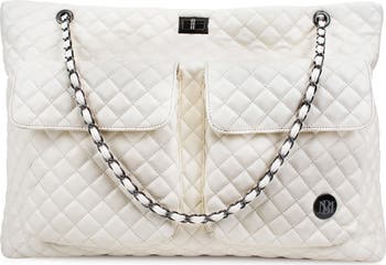 Crafted with sustainable, vegan leather materials, this tote bag offers both a cushiony feel and a reduced environmental impact. Its diamond-quilt design adds a touch of luxury while providing ample storage space to comfortably hold all your essentials. Boasting an alluring combination of style and functionality, this weekender tote bag is perfect for anyone who wants to travel light yet have enough space to carry everything they need. Whether you're jetting off on a weekend getaway or preparing for a longer trip, The Diana Weekender Tote Bag has got you covered. Not only is this tote bag stylish, but it is also a practical companion for any traveler. Designed by Badgley Mischka, The Diana Weekender Tote Bag caters to every traveler's needs with its durable vegan leather and signature diamond-quilt design DISCOVER BADGLEY MISCHKA Vogue has hailed Mark Badgley and James Mischka as one of the "Top 10" American Designers and as the darlings of the Hollywood set. The design duo has made their mark over the past three decades with glamorous, stylish, and wearable evening wear and accessories. accessories.