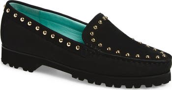 A refined slip-on crafted from supple suede with a sleek silhouette is elevated by polished metal rivets and a lug sole. A memory foam footbed lends all-day comfort.