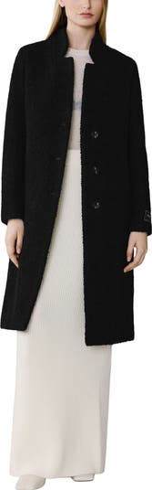 Inverted notched lapels enrich the sophisticated air of this cozy bouclé coat made from a warm wool blend softened with touches of mohair and alpaca.