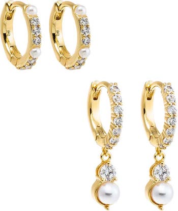 Add a touch of elegance with Adina Eden’s dainty pearl huggie earring combo set. Crafted from high-quality brass with a luxurious 14K gold plating, this chic set features 12mm huggies adorned with shimmering clear CZ stones and delicate faux pearls for a timeless, sophisticated look. Perfect for stacking or wearing solo, this versatile combo set offers effortless style for any occasion. A must-have addition to any jewelry collection.