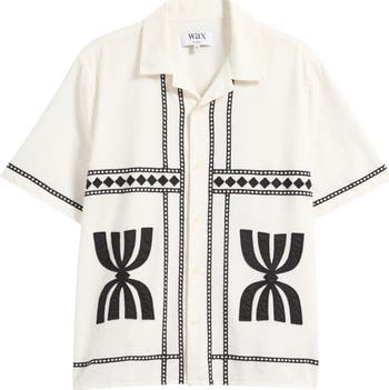 Didcot Embroidered Short Sleeve Cotton & Linen Button-Up Shirt