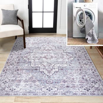 The diamond-shaped medallion in the center of this rug's design recalls ancient geometric rugs. Updated colors add a modern Bohemian-inspired twist to a classic design. With its pet-friendly pattern, this easy-care rug would be perfect for a dining room, living room, entry, bedroom or porch.