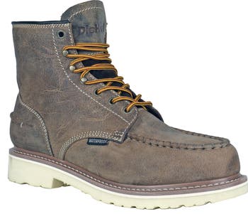 - Distressed leather upper with waterproof membrane delivers durable protection and classic work style