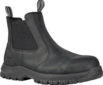 The DieHard Polara Composite Toe Lightweight Work Shoe delivers modern protection and all-day comfort in a clean Chelsea-style slip-on design. Built with a full-grain oiled leather upper, elastic side panels, and pull tabs, this work shoe allows for quick on and off while maintaining a secure, professional fit. An ASTM F2413-18 composite safety toe provides certified impact and compression protection while keeping weight to a minimum. Inside, a breathable mesh lining promotes airflow, and a removable full cushioned footbed delivers comfort for long shifts. A composite shank adds stability underfoot, while the direct-attach dual-density P/U outsole offers durable, slip-resistant traction. Certified to ASTM F3445-21 slip-resistance standards and EH rated for electrical hazard protection, the Polara is ideal for warehouse, manufacturing, service, and industrial environments. Available in sizes 7–12, 13, and 14 in D(M) and 2E(W) widths.