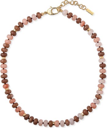 This handcrafted necklace is strung with a mix of natural stone beads, crystals and 18-karat gold-plated accents for a menagerie of color and texture.