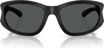 Powered by Y2K nostalgia, DIESEL's superhero-esque Oval D plaque flashes at the curved, cutout temples of sporty Italian-made sunglasses with sleek injected frames modeled after classic wraparound styles.
