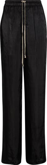 Everyday utility meets avant-garde edge in these ultrabaggy satin pants cinched with the iconoclastic designer's exaggerated drawstrings trailing from the waistband.