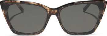 Sleek cat-eye frames and logo-marked temples define everyday sunglasses fitted with scratch-resistant CR-39 lenses and shaped from lightweight acetate.