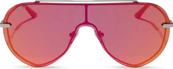 Gradient lenses lend a relaxed vibe to modern shield sunglasses with a polished stainless steel construction for a lightweight and lasting fit.
