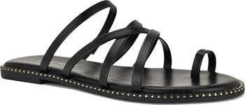 Slim straps and polished studs along the sole dial up the modern sophistication of this toe-loop sandal.