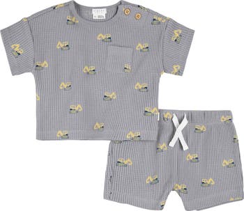 Warm weather days were made for playing in the comfort of this waffle-knit set that's soft and stretchy.