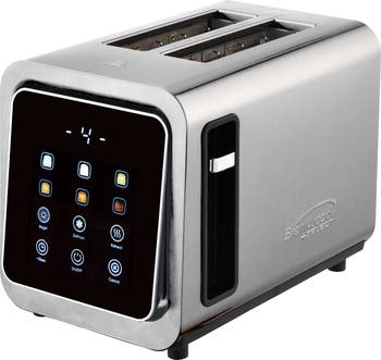 - Digital touch screen controls; Extra-wide bread slots; 6 shade settings; Bagel, defrost, reheat, and cancel functions; Stainless steel exterior; Modern design