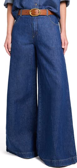 A breathable cotton-and-linen blend brings lightweight structure to these mid-rise jeans cut in a wide-leg silhouette.