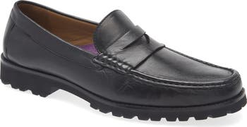 Ultrasoft lambskin leather lining combines with foam cushioning and arch support to give you comfortable strides in this durable penny loafer set on a Vibram rubber sole for enhanced traction.