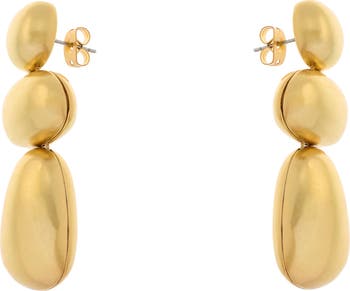 Pebble-shaped domes catch the light on these sculptural drop earrings that easily transition from the office to after-hours events.