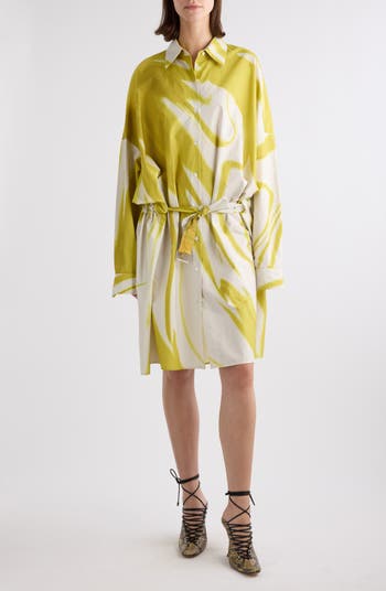 The iconoclastic Belgian designer's legacy of eclectic color-print fusion lives on in this crisp cotton-poplin shirtdress in an oversized design further relaxed by dropped shoulders. Adjust the integrated belt to turn up (or tone down) the volume.