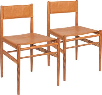 This set of two dining chairs blends a rich rubberwood frame with supple leather seat and backrest, creating a perfect balance of durability and style. The sturdy wooden frame and contoured seat provide both comfort and support, making them ideal for everyday dining. Whether styled in a modern, farmhouse, or coastal-inspired space, these chairs bring warmth and character to your dining area.