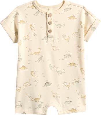 Rolled cuffs keep your kiddo's look casual as they play in this supersoft cotton romper made with snaps between the legs for quick diaper changes.
