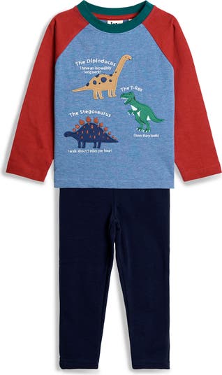 A fun dino T-shirt packed with facts pairs with solid cotton pants in this set that will have baby playing and lounging in comfort.