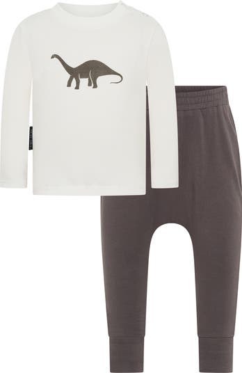 Baby's first word will end in -saurus after an epoch of play in this soft cotton-jersey set pairing a long-sleeve T-shirt with roomy coordinating leggings.