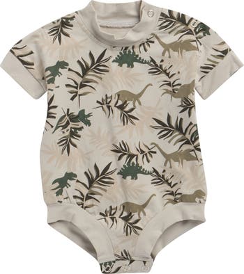 Dinos roam a mock-neck bodysuit that will keep baby comfortable in stretch-enhanced cotton.