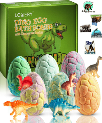 Make bath time a thrilling adventure with this 12-piece Dinosaur Bath Bomb Gift Set. Each egg-shaped bath bomb fizzes to reveal a unique dinosaur toy, sparking excitement and curiosity. Made with safe, kid-friendly materials and featuring bonus dinosaur stickers, it’s the perfect gift for boys and girls.